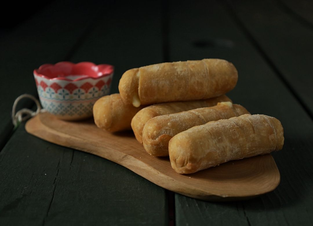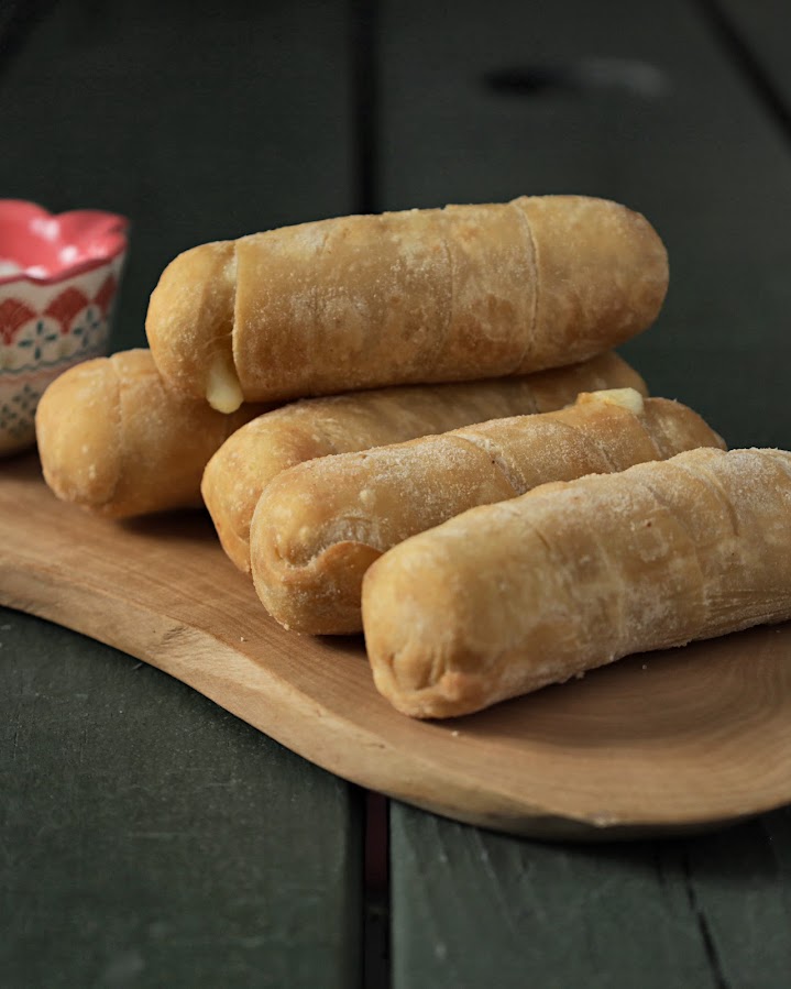 Crispy fried cheese stick made with dough - Masa crujiente rellena de queso derretido